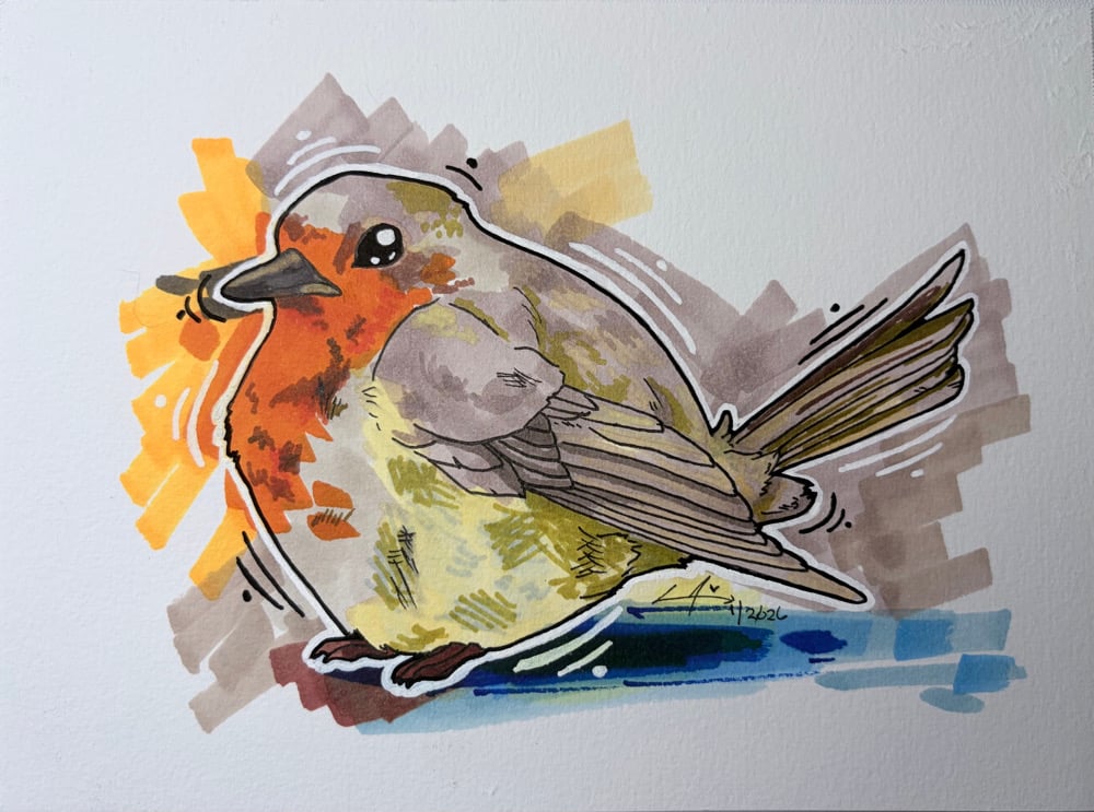 5" x 7" Marker drawing of a pretty Robin bird.