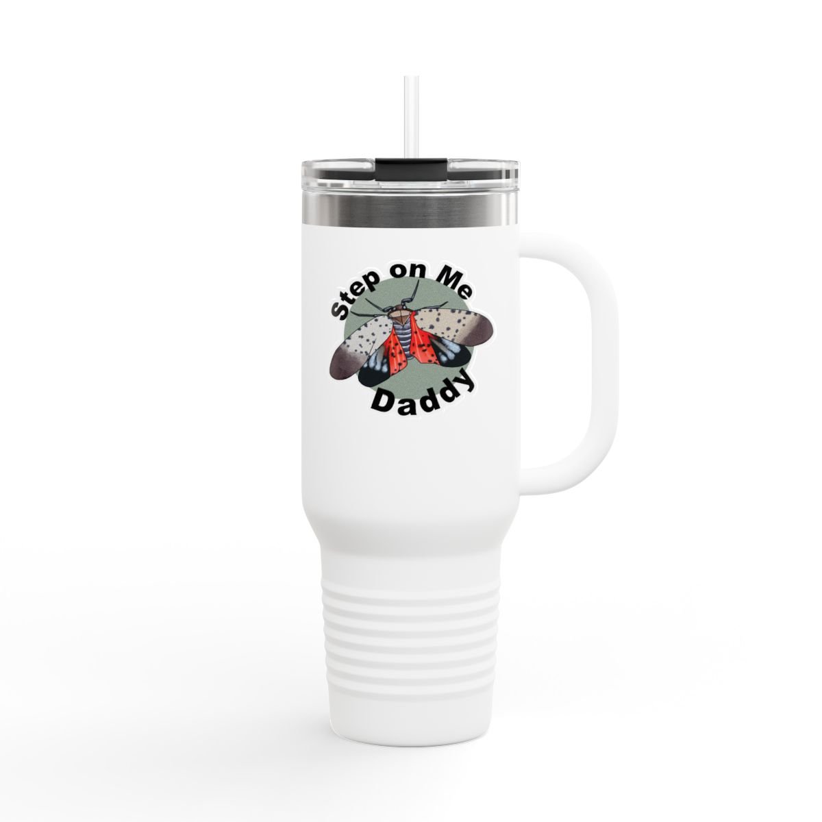 40oz Insulated Travel Mug — 'Step on Me Daddy' Colorful Lantern Fly Design